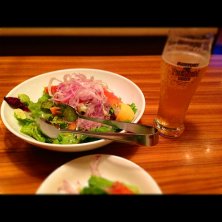 漁師風ペスカトーレ、サラダ添え。 たまには洋風の麺。 トマト、ニンニク、鷹の爪、オリーブオイル。 マンネリだけど最強。