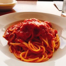 11/28 金曜日のランチタイム 『茄子とほうれん草のミートソース』 ピザ食べ放題+サラダ+Coffee で¥1000でございますよ。