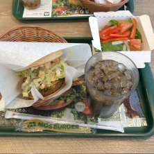 遅いお昼はモスバーガー 野菜バーガーにサラダとペプシコーラです