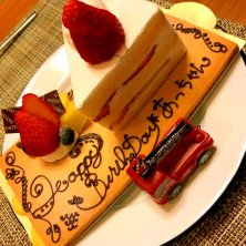 旦那さんのお誕生日ケーキは小さいホールにしてたらふく食べた(笑)ちなみにこのケーキ米粉でできててグルテンフリー。焼き菓子も生菓子もグルテンフリーの近所のケーキ屋さんです。