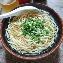 ねぎそば~♪300円 公設市場近くの沖縄そば屋さんへ。 お目当てのアーサーそばが品切れだったので具が葱だけのねぎそばを。 10時のおやつのお供には、お約束のオリオンビール(笑 麺もスープもシンプルなあっさり仕様なので朝からでもOKです。