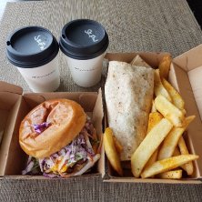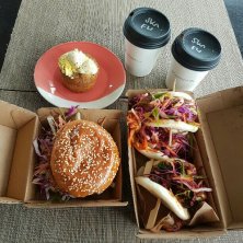 今日のTake awayランチ。 先週末は公園で食べれたけど、非常事態宣言がレベル3にアップしたので、自宅に持ち帰り。 夫のお気に入り、KoreanテイストのCrispy fried chicken bao bunsと、私のお気に入り、Spiced lamb adana burger (*^^*)