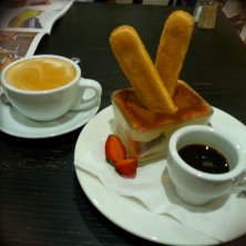 今日は誕生日だったので、大好きなレストラン(Red Spice Road)でディナーしてきました。お店の照明が暗すぎて良い写真が撮れなかったので、その後に行ったカフェ(Giraffe cafe)のティラミスの写真です。
