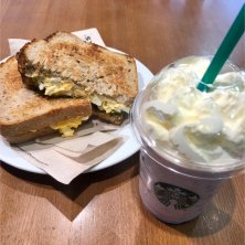 クリーミーエッグ🥚 & レタス🥬のトーストサンド🥪 Açaí Mixed Berry Yoghurt Frappuccino 久々のスタバ お昼はアジアン❓の予定も気温36度🥵 お店 エアコンがきいてなかったので、予定変更してエアコンガンガンのスタバに😆