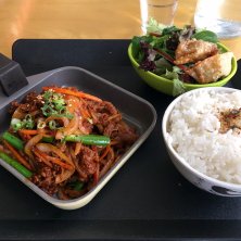 ビーフ ブルゴギ (๑´ڡ`๑) 大盛りご飯に グリーンサラダと揚げマンドゥ 付き