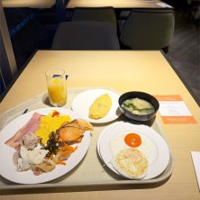 ホテルで朝食食べてます。