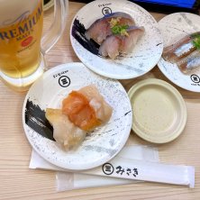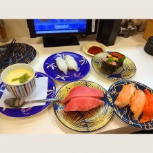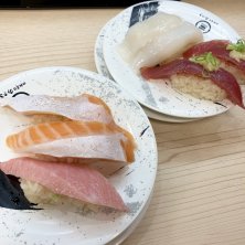 おしゅし 大切りとろサーモン、大とろ、真いか、一本釣りとろかつお 生だこ、真鯛、とろあなご、上赤身、えびも 寿司三崎港→回転寿司みさきになったお店、 前から見てたけど初めまんて 大とろ今日まで一貫170円にひかれてしまいましてなんか寿司よく食べてるなこの数日 ネタの良し悪しを言うのは野暮ってえもんで、 ご馳走様でした😋