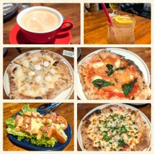 ピッツァ(マルゲリータ、クアトロフォルマッジ、桜エビとシラス)、シーザーサラダ、自家製ジンジャエール、カフェラテ 1人約¥2,700+ドリンク¥740 今日は、今年最後の書画カルチャー教室で、帰りにお仲間と忘年会〜。 やっぱりここのピッツァは美味しいなー。沢山食べて喋って、楽しかった!