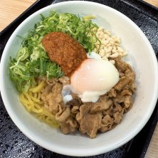 7/18のディナー🍽️ 白馬に向かう途中の屏風山SAの吉野屋。 蕎麦がなくなり、普通の吉野家になってた😢 昼もラーメンだったけど、 吉野家の「牛玉スタミナまぜそば」食べてみたく チャレンジ。 ニンニクがたっぷり効いた味噌が 決めてですね。油そばではないので さっぱり頂けて良いかも。