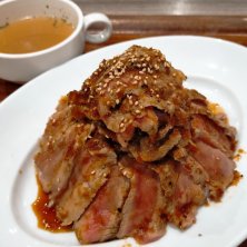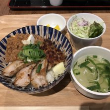 神戸ビフテキとんてきW定食♥ 牛肉と豚肉を一緒に楽しめる♪ 千葉初出店だそうで、スープ以外は大満足な美味しさでした! 色とりどりサラダ、小鉢、特製麦飯、牛鷄健康滋養スープのセットでした!(゜∇^d)!!