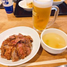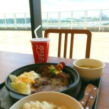 神戸 ビフテキ トンテキセット✨ 草津で上州牛を食べられなかったから 肉にくしたかったので 素敵なセットにした〜❤︎ イオンのフードコートでw 海がキラキラ〜✨ あ みいがバターに突っ込んだw