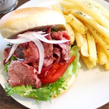 七光台にある幼稚園の仕事帰りに見つけたお店。 七光台って駅前に何にもなくて、新取手と同じような田舎なんだけど、やっぱりここのお店も大賑わい。新取手のGOTOとの違いはここのお客様はみんな若いママ友の集まりという事。おうちも新しい感じの住宅街だから、きっと若き人が多いのね。 子供のお迎えまでのひと時をどのグループも楽しんで、お喋りに花を咲かせてます。懐かしいのう。 お目当のローストビーフは売り切れ。アボカドをトッピングして、チーズバーガー。カシスアイスティーも美味しい(╹◡╹)外は暑い!