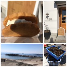 海の日🏖 @真名瀬海岸 混雑を避けた海岸を眺めに行きました♪ 暑すぎて駐車場前のオアシスのように 見えたカフェでランチ🍹 季節限定メキシカンチーズオープンサンド のりっクムッシュ 夏みかんのフルーツサンド 具がたっぷりでどれも美味しかったです✨ フルーツサンドのパンがホワホワでした♡ 夏気分最高でした♪