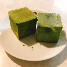 金沢のパン屋 抹茶のキューブ型のパン! 生地はホットケーキミックスみたいな感じでした