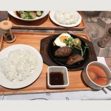 今日の夜ご飯です! 和風おろしハンバーグ食べました。 中がふわふわで感動しました!! 醤油ベースのタレと岩塩もあって、3つの味で楽しめました。 どれも美味しかったです♡♡