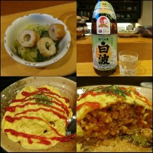 連れと別れて おっさん1人 次のお店に… 芋焼酎さつま白波で乾杯♡ (*´ω`*) お通しは 白菜と竹輪のたいたん ケチャップ気分だったので わがまま言って オムライスを作ってもらいました♪ ♡様ありがとう!(*≧∀≦*)