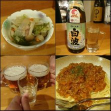 昨夜のシメ! 芋焼酎 さつま白波 お湯割りで ♡様 Kちゃんと乾杯♪σ(*´∀`*) お通しは 白菜とキノコのたいたん Kちゃん手作りの ミートスパゲティ♡(//∇//) ♡様とKちゃんにも お土産のガトーチョコ♪