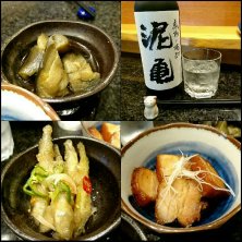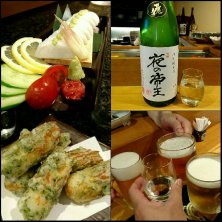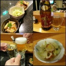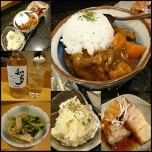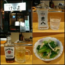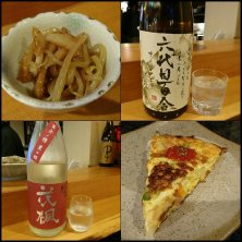 昨夜の3軒目 ( ・ε・) 芋焼酎 六代目 百合で乾杯! お通しは モヤシとさつま揚げの ポン酢和え スパニッシュオムレツ 日本酒は福井の 紗利 花楓(かえで) 秋あがり純米
