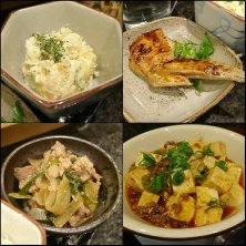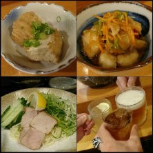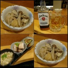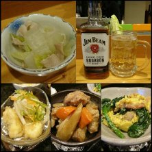 昨夜の〆 記憶なし σ(≧ω≦*) ジムビームハイボール お通しは キノコと油揚げの味噌煮 おばんざい3種盛り ニラチヂミ 手作りチャーシュー 蕪の鶏あんかけ