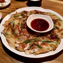 左 : 海鮮チヂミ 右 : キムチチヂミ 他にも ビーフスープやチキン、コーン&チーズ、ストロベリー マッコリなどなど 元職場仲間とワイワイ ゲラゲラ *♪¸¸.•*¨・:*ೄ· たくさん美味しいお料理いただきました 😋