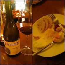移動してワインバーにて コート・デュ・ローヌのエルミタージュいいのがあるよってソムリエさんに言われてこれにしました チーズ盛り合わせのエポワストロットロ❤ 5人でいっぱい喋って楽しかった♪