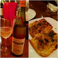 そろそろワインの時間じゃないですかー!? (ゆとりですがなにか、の柳楽優弥「そろそろオッパイの時間じゃないですかー?」の口調で) と夫相手に客引き風に絡みつつ流川を移動、ワインバーへ 最近ワイン教室で負け続きのリースリングです、アルザス あと飲みすぎたら絶対に私が言う台詞 「私お腹ペコペコなの」 でピザみたいななんちゃらってのも頼んでもらいました 具はシャンピニヨンだったかな? あー楽しかった