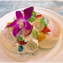 今日のランチは横浜でハワイ料理のお店😊 ハワイアンフルーツパンケーキ、苺、マンゴー、バナナなどのフルーツと生クリームをたっぷりのせた彩り鮮やかなパンケーキ 1,570円♬ メレンゲが入ったパンケーキはふわふわでとても美味しいです😋