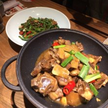 羊肉の炒めとgreen beans。辛い。