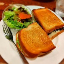 早めの晩ごはんは、今日もデリーさんで「チキンカラヒ」を食べましたw それから、、 近くのお店でホットケーキとコーヒーを。 なんと!今日はホットケーキ半額の日だとかで、 お会計安かった〜! ラッキー! ごちそうさまでしたー\ ♪♪ / それにしても、 もう本当にお腹パンパンです(๑˃͈꒵˂͈๑)w苦しーー!!