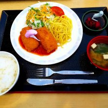 国立がんセンター サンデーの日替わり定食 800円 19Fにあって築地市場が一望できます