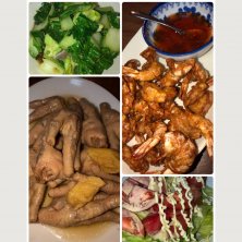 今夜の賄い…海老のカラカラ揚げ🦐❣️ 鳥足の醤油八角煮込み❣️ 青菜炒め❣️ サラダ🥗❣️ 野菜スープがありました‼️ 息子も名古屋から帰って来てグロッキーでヘッドスライディングして膝やら擦りむいて怪我が多いなぁといいながら付きもでしょう‼️