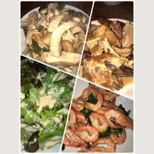 今夜のまかない!!!!! ボイル車海老🦐‼️ 縞鰺のあら炊き…骨💀‼️お造りの骨の残りあるよ d( ̄  ̄) 北京ダッグの骨💀煮込み‼️ダッグの骨の残りあるよd( ̄  ̄) サラダ🥗‼️