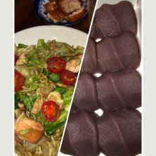 今夜もお手伝いで賄い野菜炒めとチキン焼き!! オーナーさんがパチンコ屋さんから赤福もらったから俺ら食べないといただきました(*❛⊰❛)ʓਡ~❤ 久々の赤福うまうま(o´艸`)