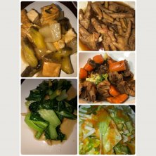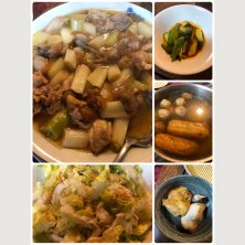 今夜の賄い❣️ 大根と厚揚げの煮物❣️ 小松菜炒め❣️ モミジの賄い❣️ サラダ🥗 スペアリブの煮込み❣️ なんかバタバタの1日だった‼️ 肘が痛くなって来た😭 来週行って来ます😔