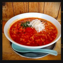 ぱっと見なんでしょーって思いますね。 「トマトラーメン」です。 昔から気になっててーお初。 しらす丼や他もおすすめみたいです。 サイドメニューは〆ご飯セット ウメかった。 刻みニンニクも入れて。😋 また行きます。 麺も好み。