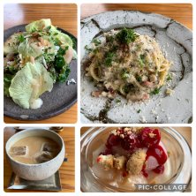 #休日ランチ 新潟から、お友達が来てくれまして… ランチのお店。 あちこち検討したんだけど、彼女の滞在時間にシバリがあって、ちゃちゃっとパスタでもってことになりました。 とりあえずのサラダ。 パセリを吸い込んでしまい、ムセてゲホゲホになってしまった( ;∀;)