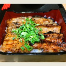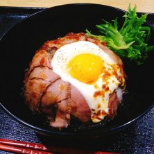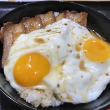 厚切りカルビ十勝豚丼 北海道十勝豚肉工房ゆうたく認証 今日の昼食 もう雨は降らんでくれ。 広島県広島市西区 全国ご当地グルメ屋台