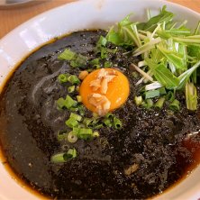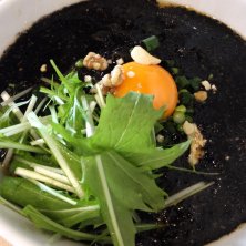 黒胡麻汁なし坦々麺、ショーゲギのビジュアル! 麺をだいたい食べたらスープで割って汁も飲みます。