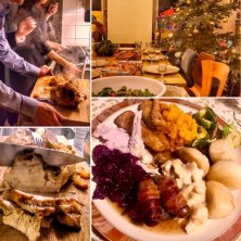 遂にSちゃんの友達でボストンのご家族宅に。 今回の旅行のハイライトであります😥 すげー家🏡😬😅 あちらのご両親と妹さん、コチラは女子部全員とオマケのワタクシ。9人で大宴会(いえ、クリスマスのホームパーティです) Sちゃんはお料理のお手伝いして、奥さん同士は日米友好おしゃべり大会。 お義母さんはKちゃんが通訳で、妹さんと3人で。 初対面なのにあっという間にスンナリ溶け込み、ソレがまたシャクだったりして😥 ターキー手伝ってるSちゃん、まるで若夫婦じゃん! けっ😓