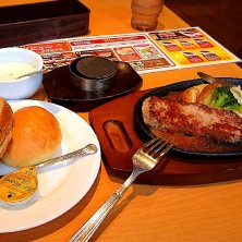 実家6日目晩御飯〜☺️ 夕方から旦那の実家へ😉 今朝から旦那も里帰りしているので、義父と3人でステーキ屋さんに行きました🥩 車で行ったので飲めない旦那に付き合って私もビールなし🍺😭 ウソやん! こんな肉食べてんのに、ビールないなんて😭 いや、ビール飲むって言ったのに、その後にスープバーを頼むと言ったら、ビール→スープバーに勘違いされたらしい💦 ちゃうねん、ビール+スープバーやってん😂 まぁ、ええか、と、強くは主張しなかったが、、、😆 250g、リブロース