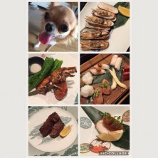 まじゃく♪ にシャトーブリアン♪ 写真には無いけど、とうもろこしの天麩羅 あげまき貝、穴子の握りと漬けの握りが美味しかった〜(*^^*)♪ そして、可愛い〜可愛い〜愛犬ラテ嬢❣️ 新しい服をネットで注文したら、XSでも大きかった…