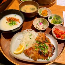 かしわ屋のお昼ご飯〜 *生姜餡卵焼き&鶏胸肉の柚子塩唐揚げ御膳 娘とABCクッキングの1coin lessonに参加 『くるみチーズツイスト』を焼いて来たよ〜 ランチはすぐ近くのお店で 混む前に飛び込んだけど、めちゃうま😋 *粕汁・ナムル・お豆腐・香の物 お菜も美味しくて大満足〜