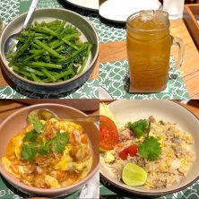 空芯菜炒め+エビガーリックオムレツ+豚肉チャーハン+ジャスミンティー☻ タイ旅🇹🇭