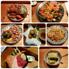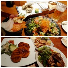 今夜は夫と街中の居酒屋へ行ってきました。イカゲソ唐揚げ、ちらし寿司、サーモン&アボカドサラダ、椎茸と海老の天ぷら、コロッケ、牛スペアリブを頂きました。