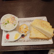 モーニングセットの自家製アーモンドトースト🍞 母とお墓参りに行く前に😋