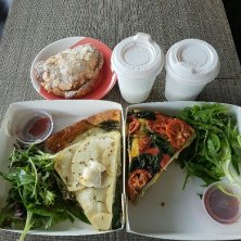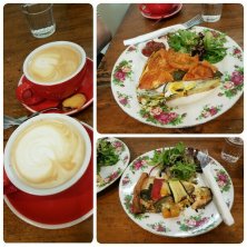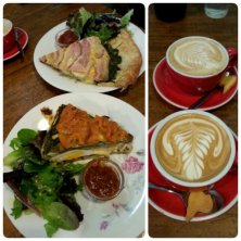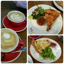 今日のランチ。今日のコーヒーは今ひとつだったけど、パイとタルトは安定の美味しさ (*^^*)
