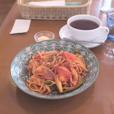 完熟トマトのナポリタン(+パルメザンチーズ)、北欧アロマティー ¥1,848 ちぎり絵の帰りに、ランチ。 アロマティー、初めて飲んだけど、香りがものっそいい。 お腹と体重と相談して、今日はケーキは我慢。たぶん、次回は食べる(笑)。 ちぎり絵の今年からの自主教室、会長にさせられてしまった……(泣)。しょーがないから副ならやるよって言ったのに、会長に決まるなんて、ひどくね?٩(๑`^´๑)۶