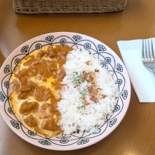 バターチキンカレー(少なめ)、さくらのふわふわロールケーキ(ハーフ)、ブレンドコーヒー(ハーフ) ¥1,573 ちぎり絵カルチャー教室の帰りにランチ。 中国結びの曜日が定休日で寄れなくなってたけど、また来られるー! わざわざ来るにはちょっと面倒で、ついでの用事が滅多にない場所だから、嬉しいな(^^)