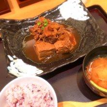 今日のおひるは定食屋さんで、めっちょイイ色に煮汁が染みた肉豆腐の定食です〜(*´∀`*) しっかりと中まで味が染みた豆腐にかまど炊きのご飯はもちろんお代わりOKなのでどんどん進んじゃうw