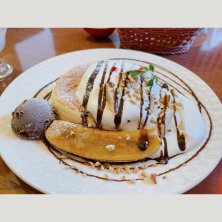 8代葵カフェ *葵パンケーキ 新しくできたカフェへ♡ 和食のお店の系列店らしく店内はモダンな感じで落ち着く♡ 軽食メニューも充実しててランチにも使える!! パンケーキはふわふわ系で甘すぎず美味しかった♡シンプルだったのでバニラアイスも追加♡ また来よ♡